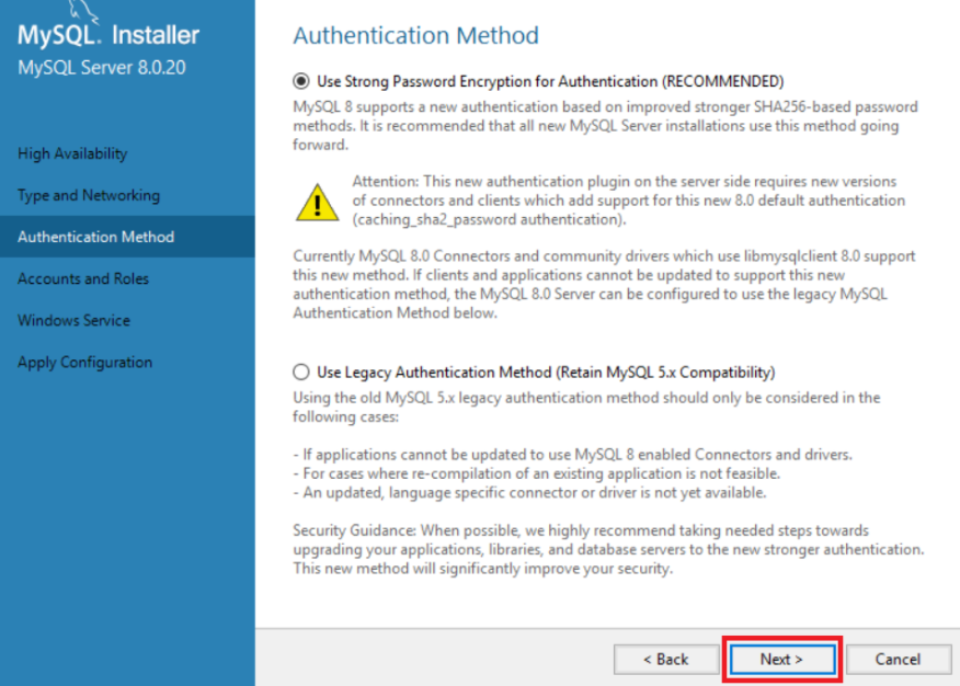 Product Configuration > ( Standalone MySQL Server / Classic MySQL Replication)