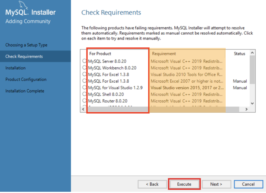 Status 의 Manual 이 표시되어있는 경우 별도로 설치해야하는 기반 프로그램이니 그냥 Next로 일단 진행